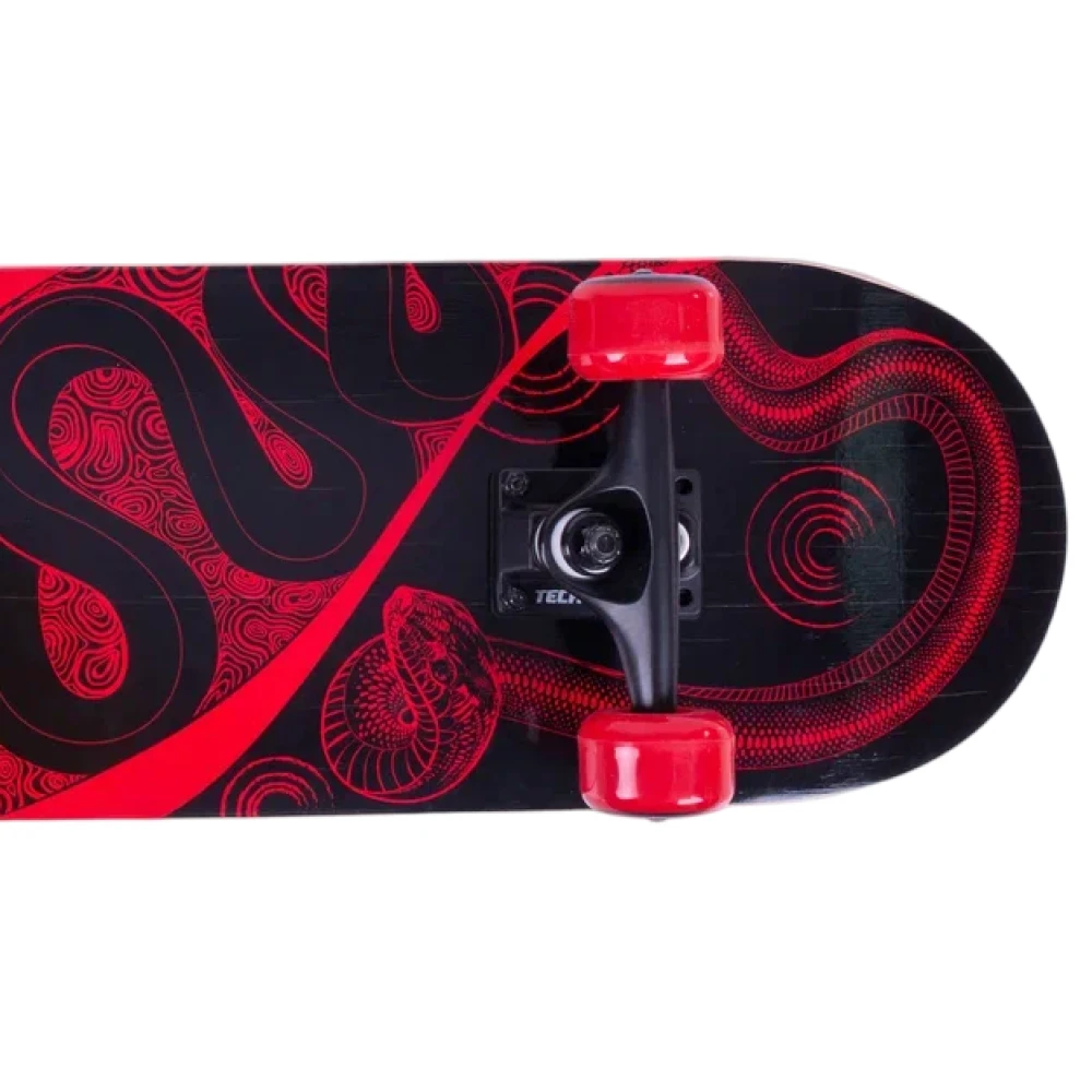 Нижняя часть скейтборда украшена замечательным принтом в красном цвете со змеей, что придает доске уникальность и бунтарский дух. Двойной концевой загиб (Double Kick) делает этот скейтборд идеальным для исполнения сложных трюков и становится незаменимым атрибутом каждого скейтера.