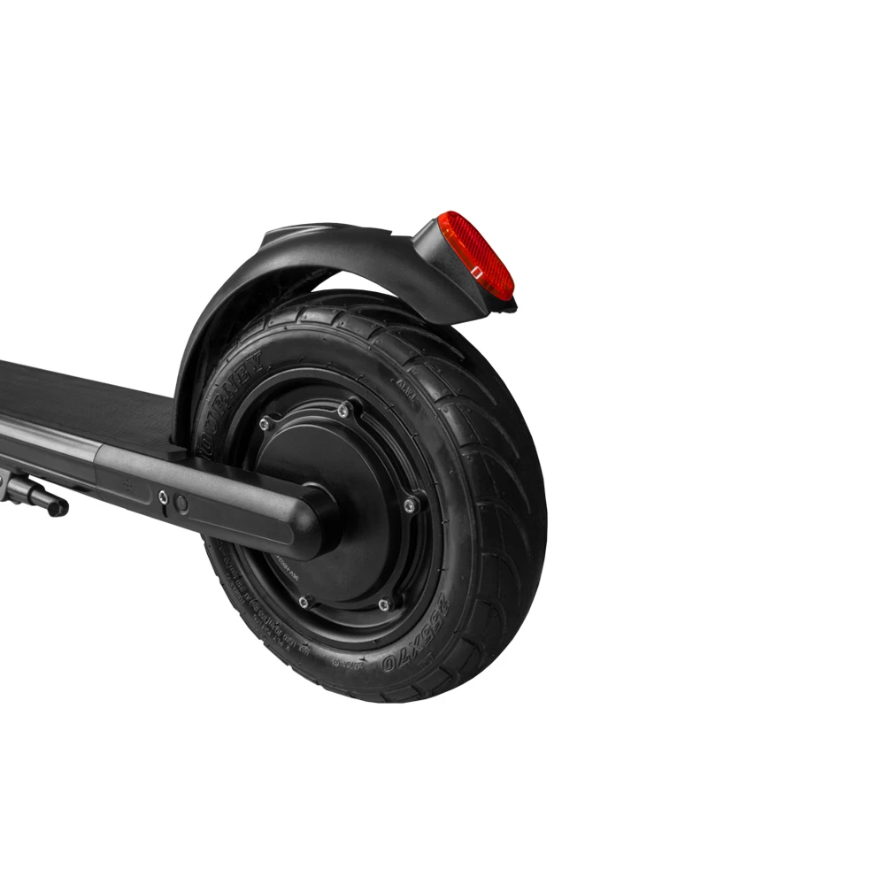 Данный самокат также позаботится и о вашей безопасности. На нём установлено целых три тормозные системы: механический тормоз-крыло, электронный для заднего колеса, а для переднего барабанного типа. У покрышек широкий протектор, что даёт улучшенное сцепление с дорогой. Тормозные тросы и коммутационные провода скрыты в раме электросамоката, что обеспечивает им надёжную сохранность и уменьшает риск повреждения. Для ночного времени суток имеются задние ходовые огни, а спереди светодиодный фонарь, которому можно настроить яркость и угол освещения.
