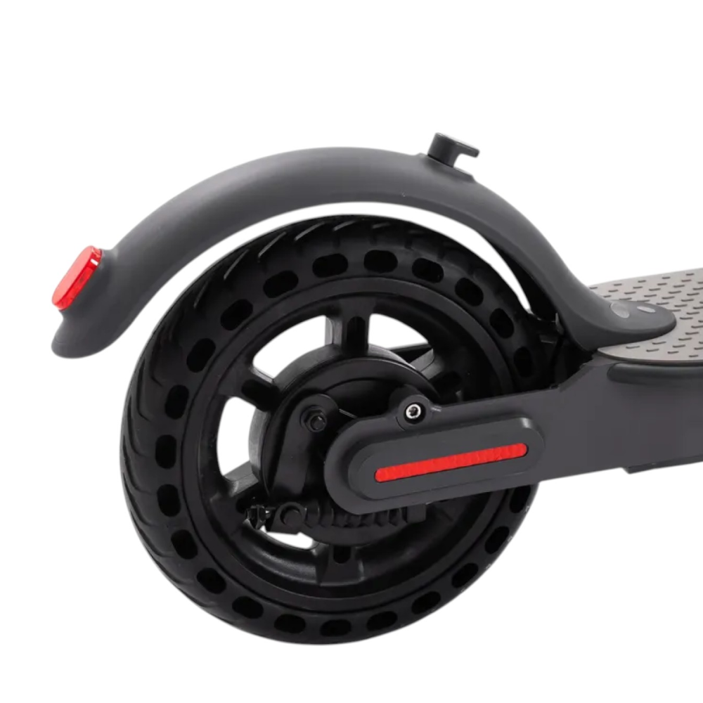 При мощности двигателя в 350 Вт и емкости батареи 36V, 7.8 Ah модель способна развивать скорость до 25 км час. Запас хода составляет 30 км.