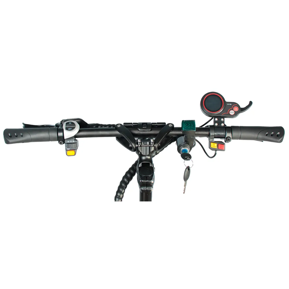 YOKAMURA RX1 оснащен мощным двигателем 1200 Вт. Такая мощность позволяет ему передвигаться по бездорожью, с легкостью покорять подъемы. Рельефная поверхность шин на 10.5 дюймовых колесах отлично этому способствует. Питание двигателя происходит от аккумулятора емкостью 21 А*ч. Напряжение 48 вольт.