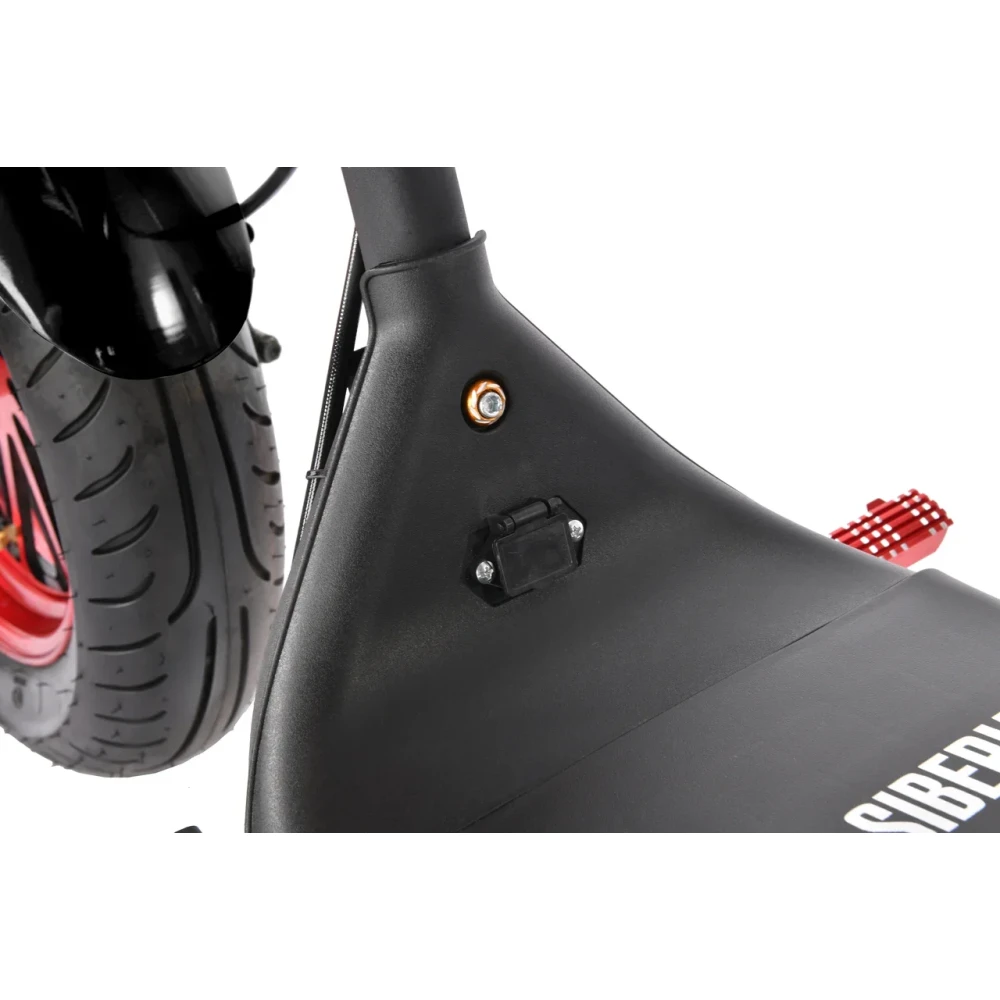 Модель оснащена 12-дюймовыми вездеходными колесами, позволяющими преодолевать препятствия по городской и непроходимой местности. Двигатель мощностью 3950 Вт допускает развитие скорости до 71 км/час. Мощное АКБ с полной зарядкой до 6 часов остается работоспособным до 40 км пути.