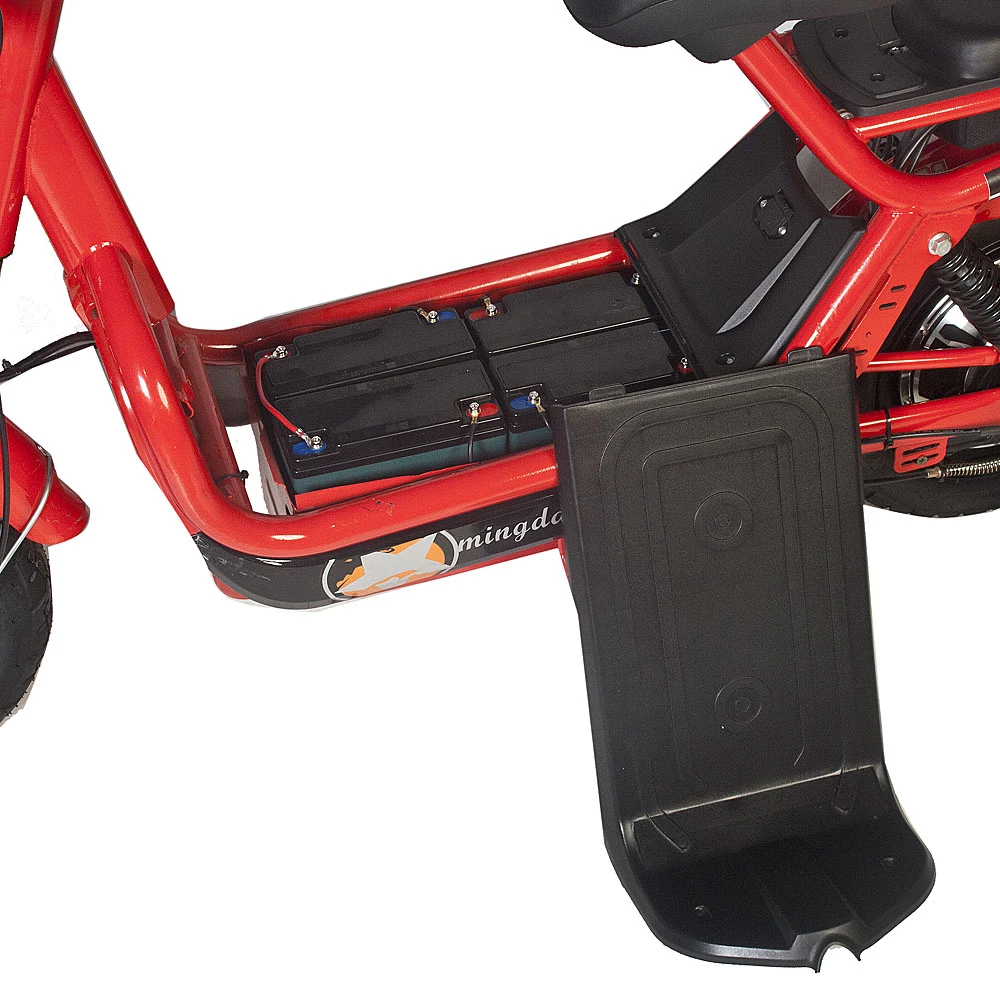 Сидение скутера выполнено из мягкой, прочной и долговечной эко-кожи и имеет прямую спинку для удобной посадки пользователя. На руле установлены анатомические ручки тормоза, кнопки управления светом и переключением скоростей и ручка газа, сделанная из нескользящего материала. В комплекте к скутеру идут зеркала заднего вида, сидение с прямой спинкой для пассажира и корзинка для вещей, выдерживающая до 30 кг.