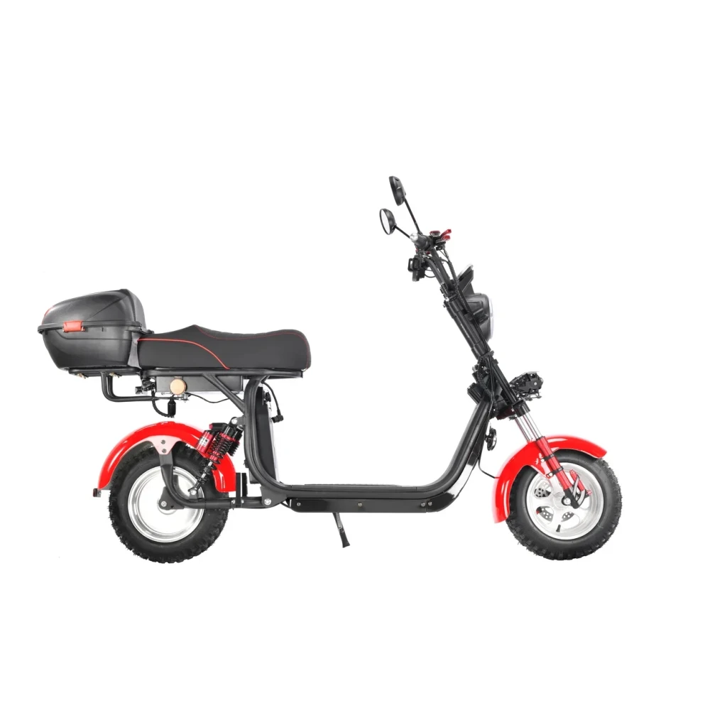 Электроскутер CityCoco WS-Pro+ 2500W – произведенная в красных цветовых оттенках техника способна доказать совершенство езды на практике. Пневматические агрессивные колеса, по внешнему виду напоминающие шины внедорожника созданы для езды по городской местности и бездорожью. Убедиться в технических характеристиках можно прямо сейчас. Предлагаем сделать заказ и купить электроскутер в нашем интернет-магазине.