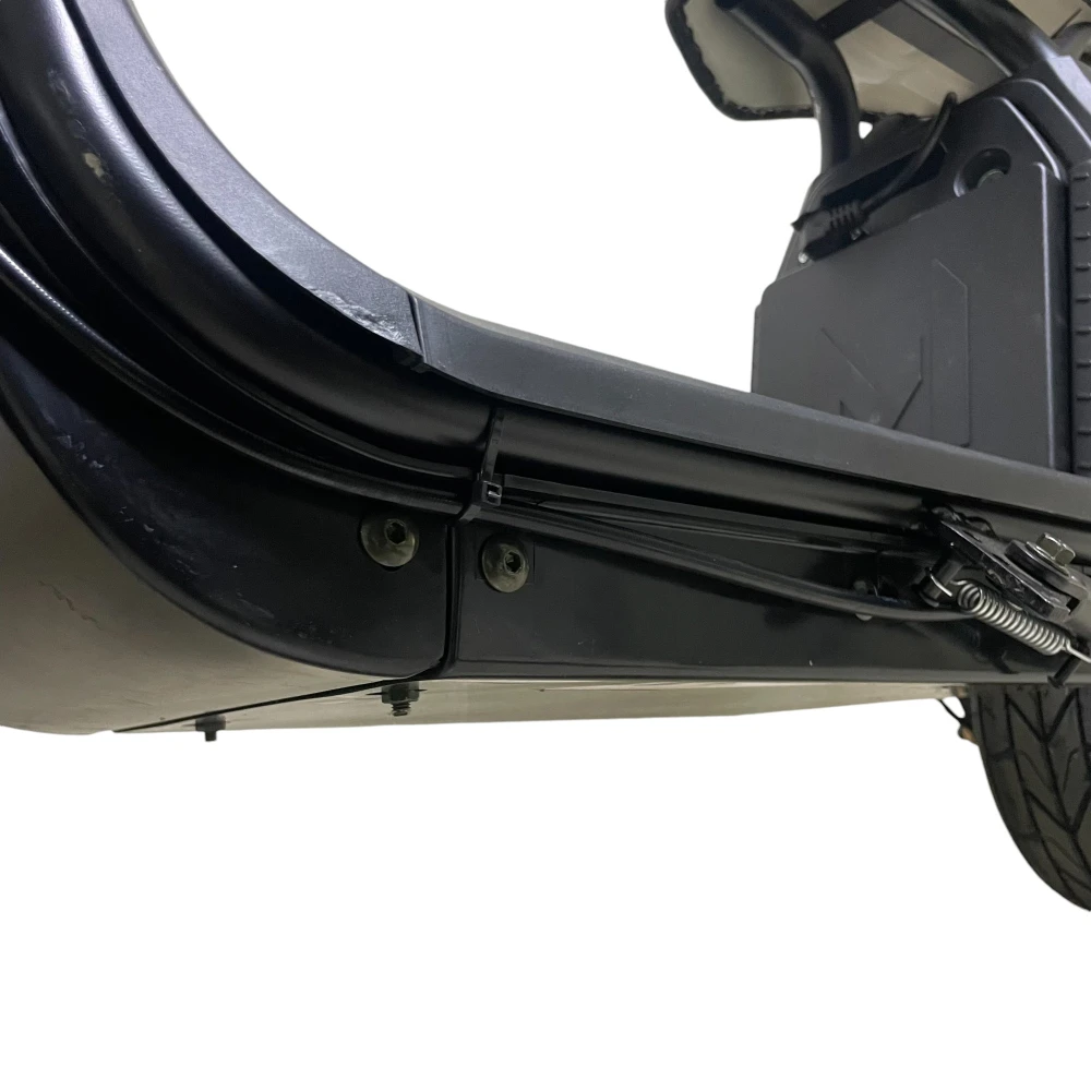 Скутер оснащен мощным двигателем, позволяющим развивать скорость до 40 км/ч, что делает поездки по городским улицам быстрыми и приятными. Благодаря большим шинам с воздушной подушкой и усовершенствованной системе подвески, каждая поездка становится комфортной, независимо от состояния дороги. Надежные дисковые тормоза на обоих колесах гарантируют безопасную остановку в любых условиях.
