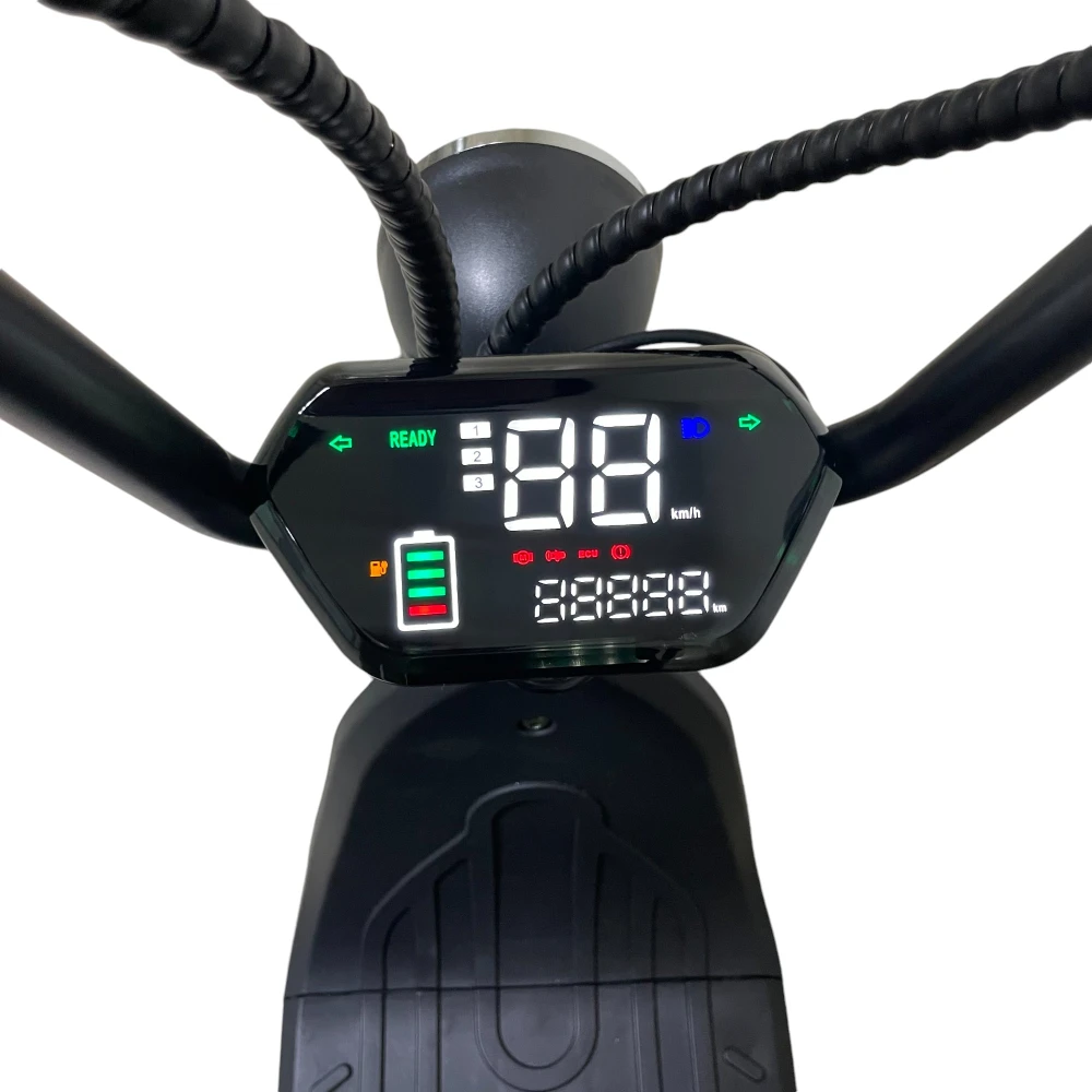 Технологическая оснащенность Citycoco GT X2 Pro Mini впечатляет: большой ЖК-дисплей предоставляет всю необходимую информацию, включая скорость и уровень заряда батареи. А благодаря Bluetooth соединению вы можете настроить скутер через смартфон или наслаждаться музыкой через встроенные динамики.