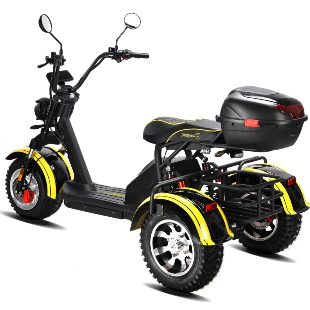 Электроскутер Siberton PRO Trike – это инновационное транспортное средство, сочетающее в себе мощь, практичность и надежную конструкцию, выполненную из высококачественной стали. Благодаря продуманной трехколесной компоновке, данная модель гарантирует стабильность и управляемость даже в условиях городской суеты, а клиренс в 21 см обеспечивает уверенное преодоление неровностей дорожного покрытия.Сердцем устройства является двигатель мощностью 3000 W, который позволяет динамично стартовать и уверенно поддерживать скорость, обеспечивая максимальный пробег до 60 км на одном заряде. Поддерживаемый аккумулятором типа Li-ion с емкостью 21 Ah и рабочим напряжением 60 V, этот скутер быстро восстанавливает заряд за около 7 часов, что делает его идеальным для ежедневного использования.Система безопасности представлена надежными дисковыми гидравлическими тормозами, которые гарантируют своевременное и точное торможение в любых ситуациях. Дополнительное оснащение, включающее поворотники и сигнализацию, повышает видимость на дороге и обеспечивает максимальную защиту водителя.Особое внимание уделено комфорту: спереди используются масляные амортизаторы, а сзади – комбинация масляной системы с пружинной подвеской, что позволяет минимизировать влияние дорожных неровностей на качество поездки. С общей массой 106 кг и компактным размером, электроскутер Siberton PRO Trike удачно сочетает в себе прочность и функциональность, делая его надежным выбором для тех, кто ценит комфорт, мощность и безопасность в одном устройстве.