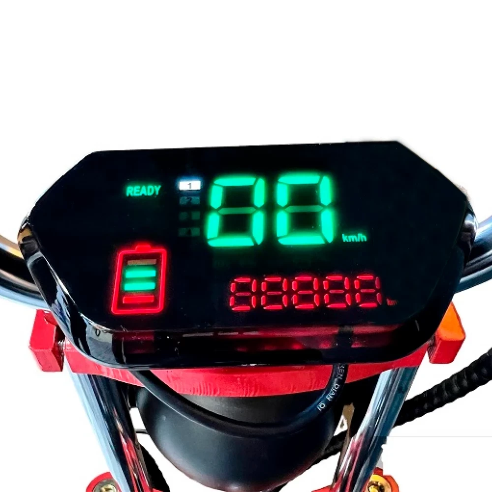 Кроме того, электроскутер имеет прекрасный комплект функциональных возможностей, которые обеспечивают комфорт и безопасность во время поездки. На ней имеются передние и задние тормоза дискового типа, встроенный звонок, складывающиеся педали и подножки, а также яркий светодиодный дисплей, на котором можно отслеживать скорость, расстояние и заряд аккумулятора.