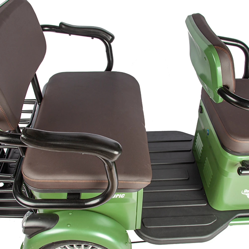 Электротрицикл Rutrike Топик – всесезонная модель тс стала лидером продаж этого сезона. Появление техники вызвало восторг у начинающих и продвинутых райдеров. Технические характеристики совершенствованы по максимуму, не вызывают проблем с эксплуатацией. Купить трицикл выгодно, без наценок предлагает наша компания. Технические характеристики тс (мощность двигателя 800 Вт) позволяют развивать скорость до 25 км/час и преодолевать 30 км пути. Модель удобна для активного время провождения на свежем воздухе. Техника оснащена комфортными сиденьями. Первое, мягкое и удобное предназначено для водителя, второе – для пассажиров. Размеры сиденья позволяют разместить 2 человека одновременно. В нижней части размещена широкая платформа для ног. Прорезиненная поверхность исключает соскальзывание стоп, повышает степень безопасности пасажиров. Наличие передней светодиодной фары разрешает эксплуатацию в вечернее время и непогоду. Особенности модели сделали технику популярной в гостиничном бизнесе и частном секторе. Красивый привлекательный трицикл заметен на фоне других участников движения. Купить или заказать технику сейчас можно связавшись с менеджером интернет-магазина в телефонном или онлайн-режиме.