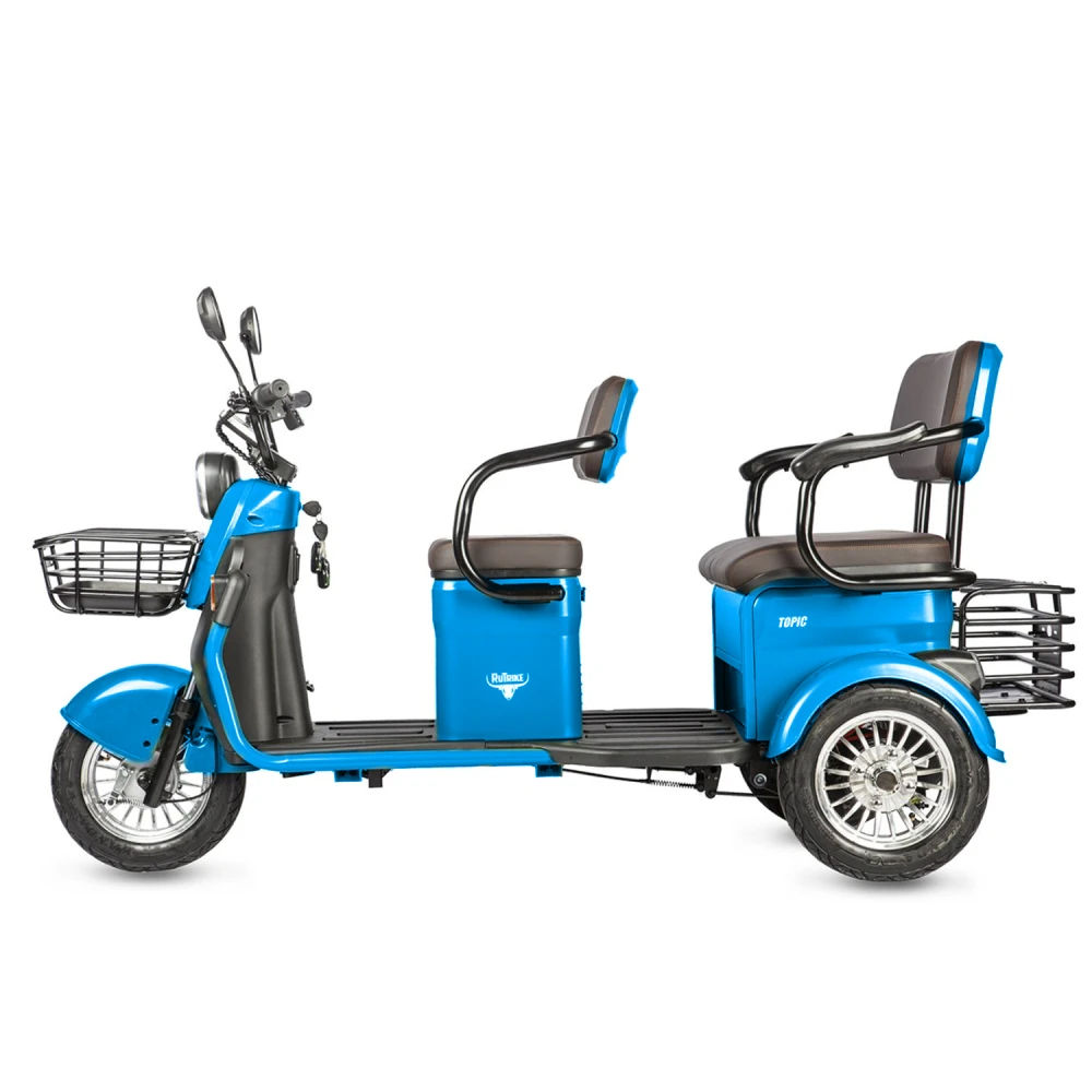 Электротрицикл Rutrike Топик – новая модель от производителя rutrike. Может использоваться в грузовых целях и для туристического бизнеса. На этапе изготовления производитель сделал максимум, чтобы электротрициклы rutrike были надежными и приятными по дизайну, отличными в ходовке и одними из самых комфортных. Купить Электротрицикл Rutrike Топик снабженный максимальным функционалом по выгодной стоимости позволит сотрудничество с нашим интернет-магазином. Трицикл rutrike топик оснащен стальной мощной рамой. Наличие в электротрицикле качественных удобных двухрядных сидений обещают прекрасное и комфортное время провождение. Мощную тягу rutrike топик обеспечивает качественная комплектация. В новых моделях электротрицикла установлен электродвигатель мощьностью на 800 Вт и емкая батарея на 20Ah, что позволяет развить скорость до 25 км/ч и проехать до 30 км пути на одном заряде. Безопасность гарантирована хорошим светодиодным освещением и качественными тормазами. Для заказа электротрицикла топик от производителя rutrike предлагаем сделать звонок менеджеру или связаться с ним в чате.