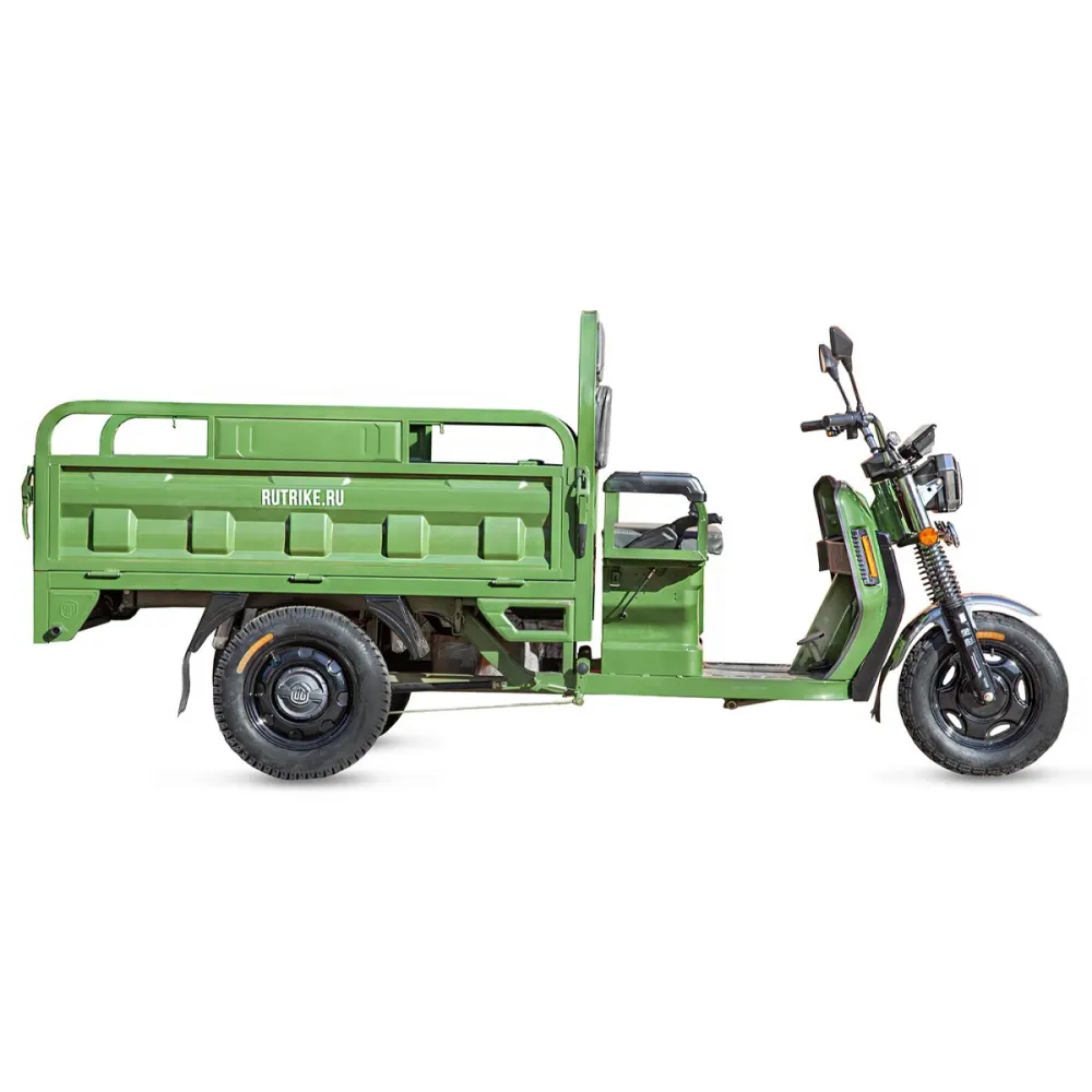 Грузовой электротрицикл Rutrike Маяк 1500 60V1000W зеленого цвета - это надежное и эффективное транспортное средство, предназначенное для перевозки грузов на небольшие расстояния. С его помощью вы сможете легко и быстро перемещать различные грузы с максимальной нагрузкой до 600 кг.