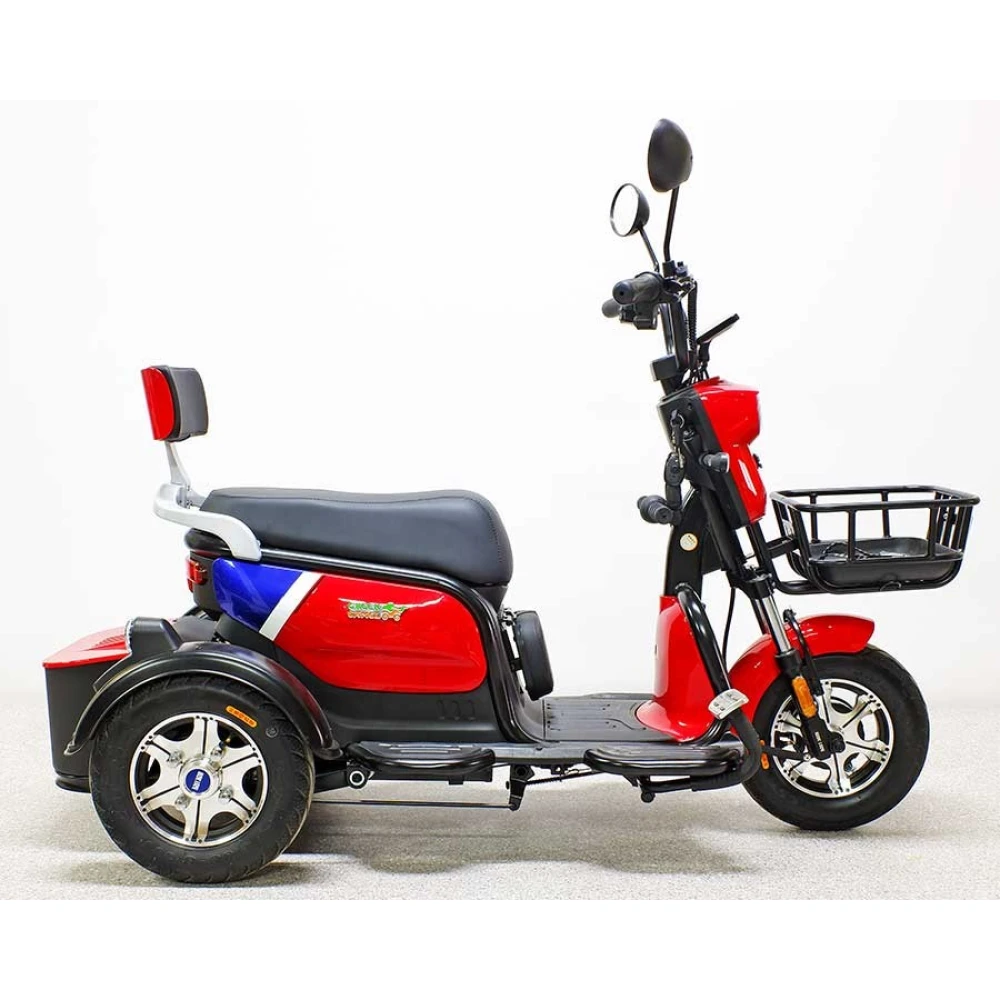 Трицикл GreenCamel Фродо Q2 (60V 500W) Trike дифференциал, красного цвета – стильная модель по приятной цене. Прочная конструкция трицикла рассчитана на максимальную грузоподъемность и подойдет для взрослых пользователей. Техника прекрасно подойдет для работы на садовом участке или перевозки грузов в складских помещениях, на ней приятно будет прокатиться по городской местности.