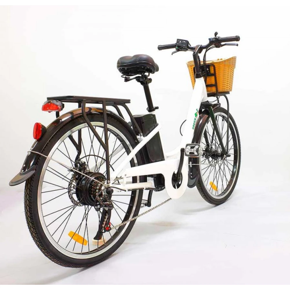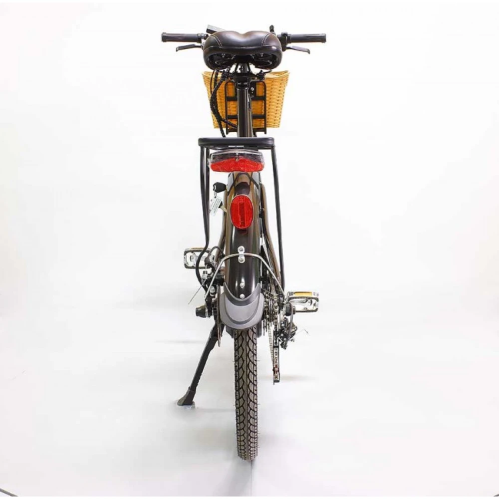 Мощность заднего мотор-колеса составляет 350 Вт, достаточная для передвижения по городской и сельской местности, вылазок с друзьями и отдыха в парковой зоне. Задняя и передняя тормозная системы, прочные колеса размером 26 дюймов обеспечивают безопасность езды, возможность своевременной остановки. АКБ емкостью 10 Ah допускает езду на одной подзарядке до 30-35 км.