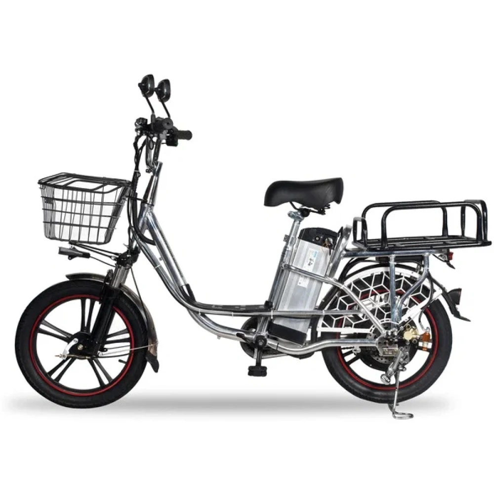 Седло велосипеда мягкое, сделано из прочного материала. На таком седле даже самые дальние поездки покажутся ничем. Приятный бонус к покупке – это комплектация Minako V12 Lux. Кроме дополнительной батареи он, в отличие от конкурентов, укомплектован зеркалами заднего вида, крыльями, подножкой, корзинкой и багажником.