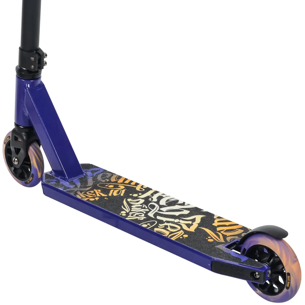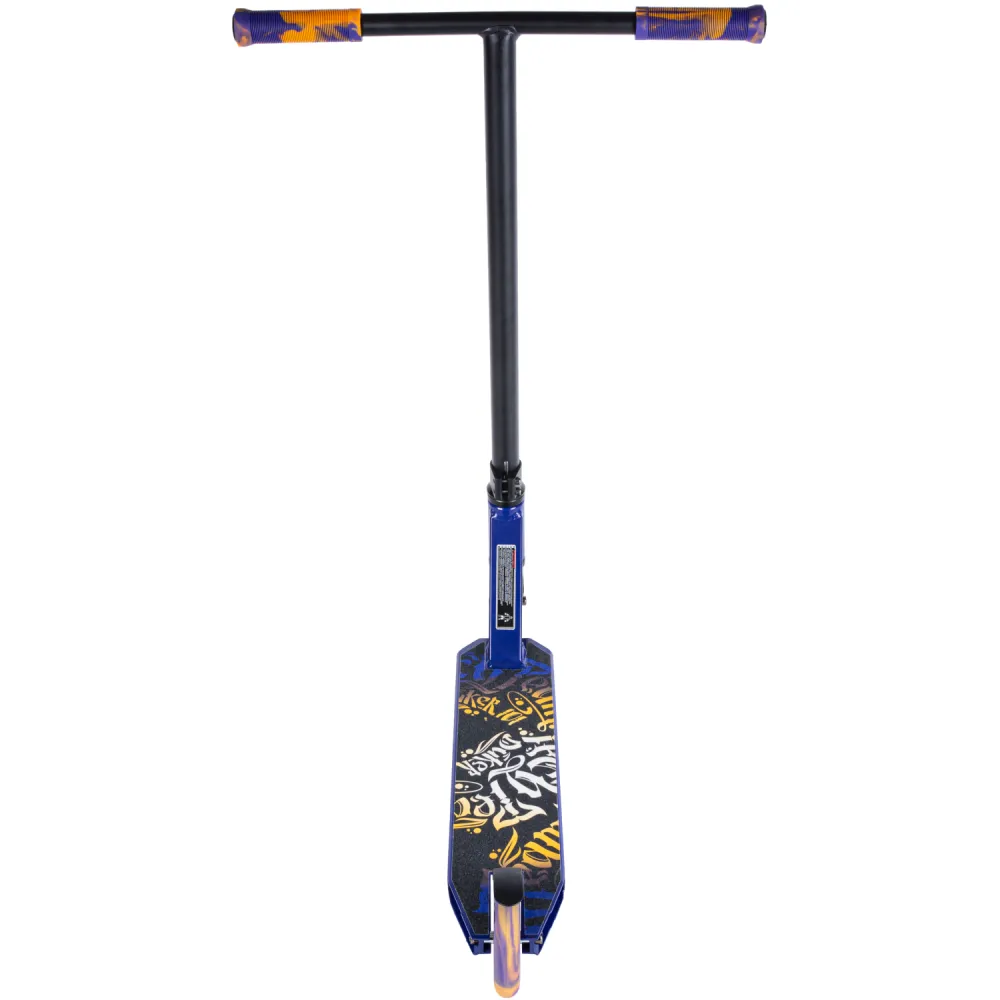 Самокаты изготавливаются в чёрных и фиолетовых тонах с дизайном «леттеринг». Грипсы 12 см, имеют два цвета с барендами из пластика.