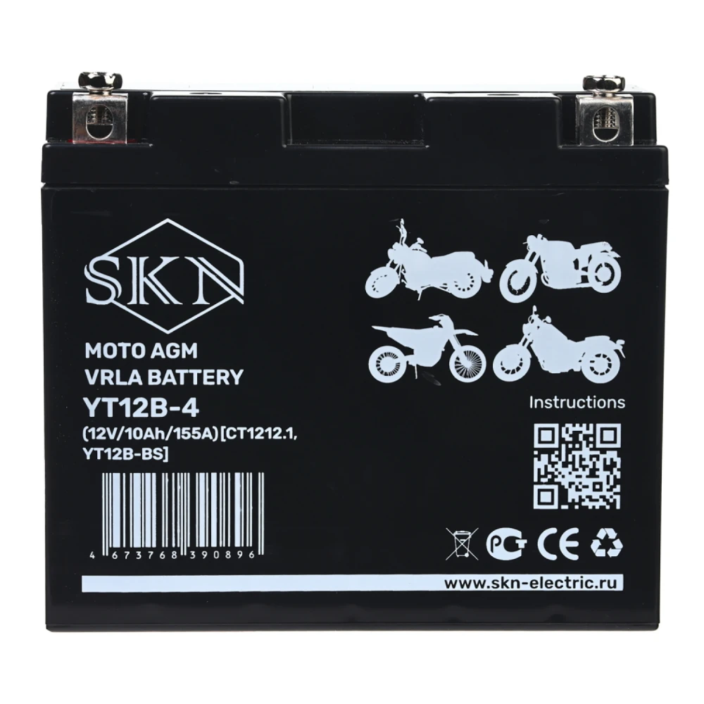 Аккумулятор стартерный для мототехники SKN YT12B-4 (12V/10Ah/155A) [CT 1212.1, YT12B-BS]
