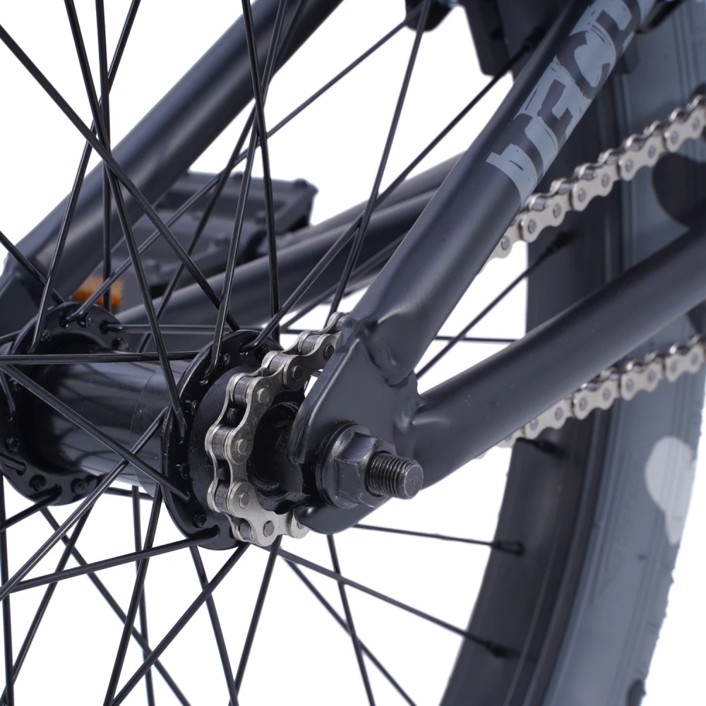 Руль шириной 700 мм и высотой 9" вместе со стальной вилкой 1 1/8" обеспечивают уверенное управление. Система на промподшипниках Cr-Mo 175 мм и стальная звезда на 25 зубьев с драйвером 9Т дают точный отклик и плавный ход.