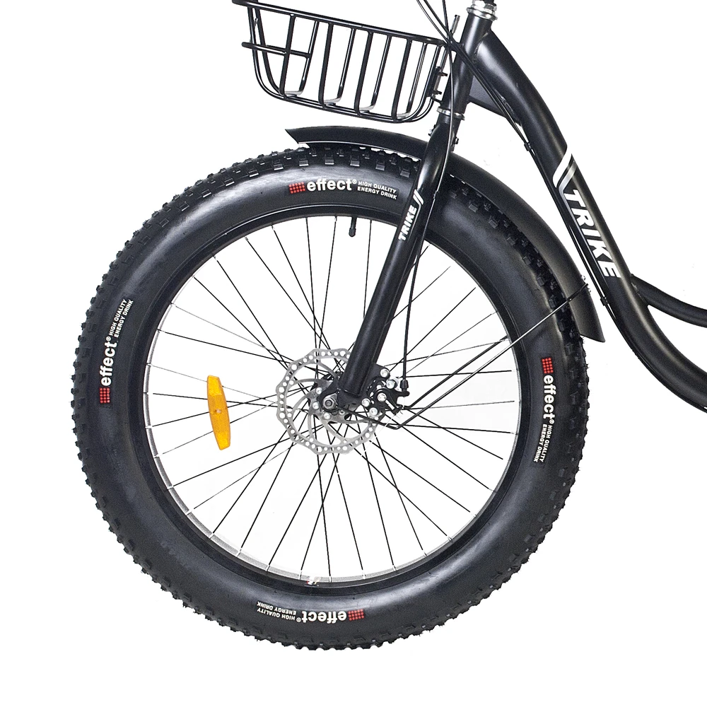 Современный трицикл представлен стильным заметным дизайном. Вызывает удивление и  зависть со стороны других райдеров. Основная конструкция техники изготовлена из долговечного прочного металла, не деформирующегося при максимальной нагрузке 180 кг. Тормозная система – дисковая, механическая, гарантирует своевременное торможение и безопасность передвижения пользователя.